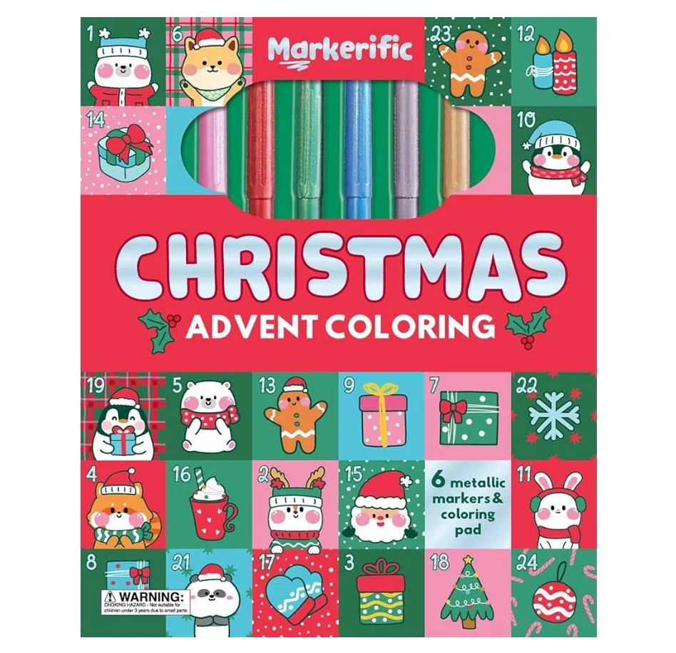 Get ready for a magical holiday season with the Markerific: Christmas Advent Coloring! This delightful coloring folder brings joy to both children and adults alike, offering 24 beautifully designed pages to color, each one counting down the days of Advent before Christmas. Perfect for keeping little hands entertained while counting down the days until Christmas, this activity folder is an ideal way to celebrate the season. With 6 vibrant metallic markers neatly stored in a foam holder, you’ll have everything you need for a creative Christmas countdown!