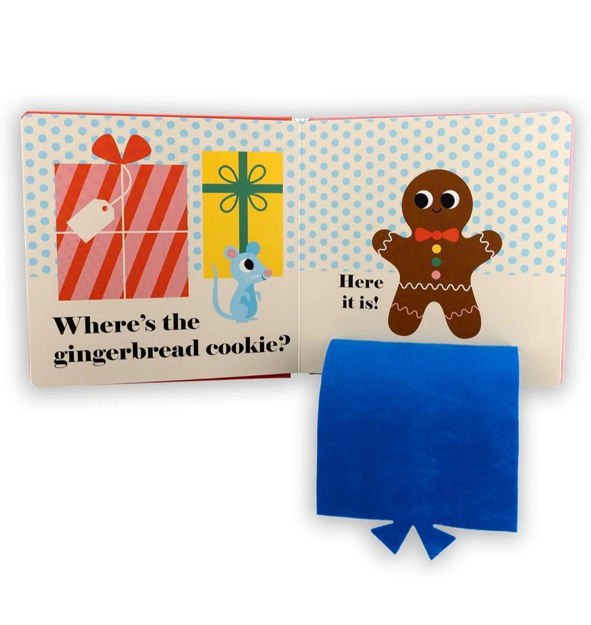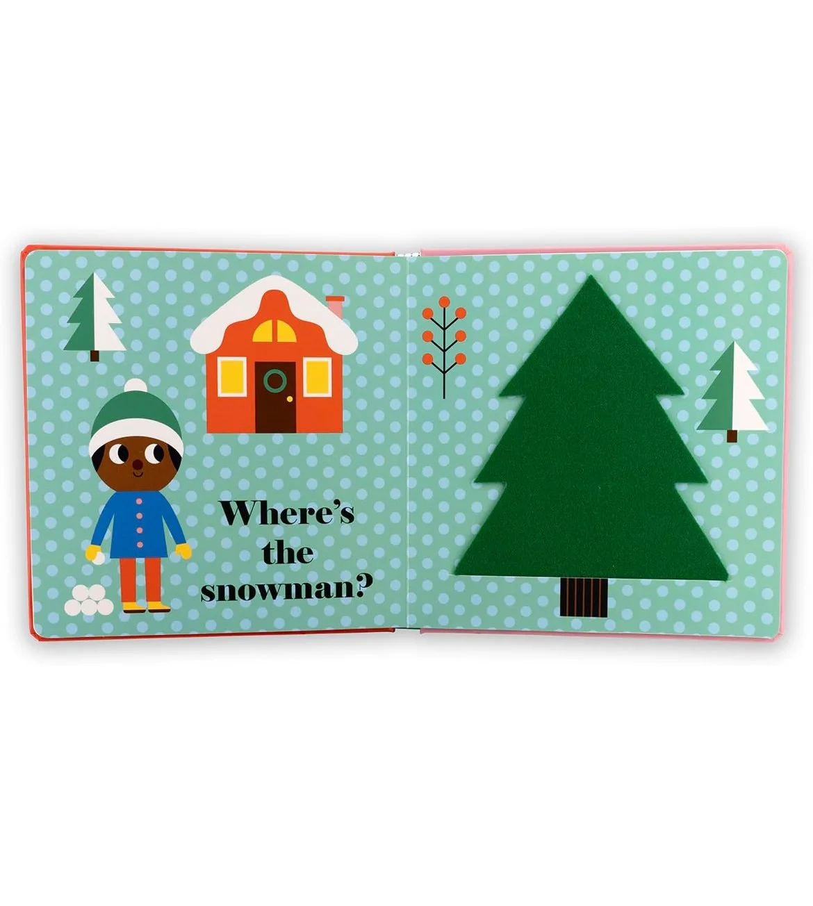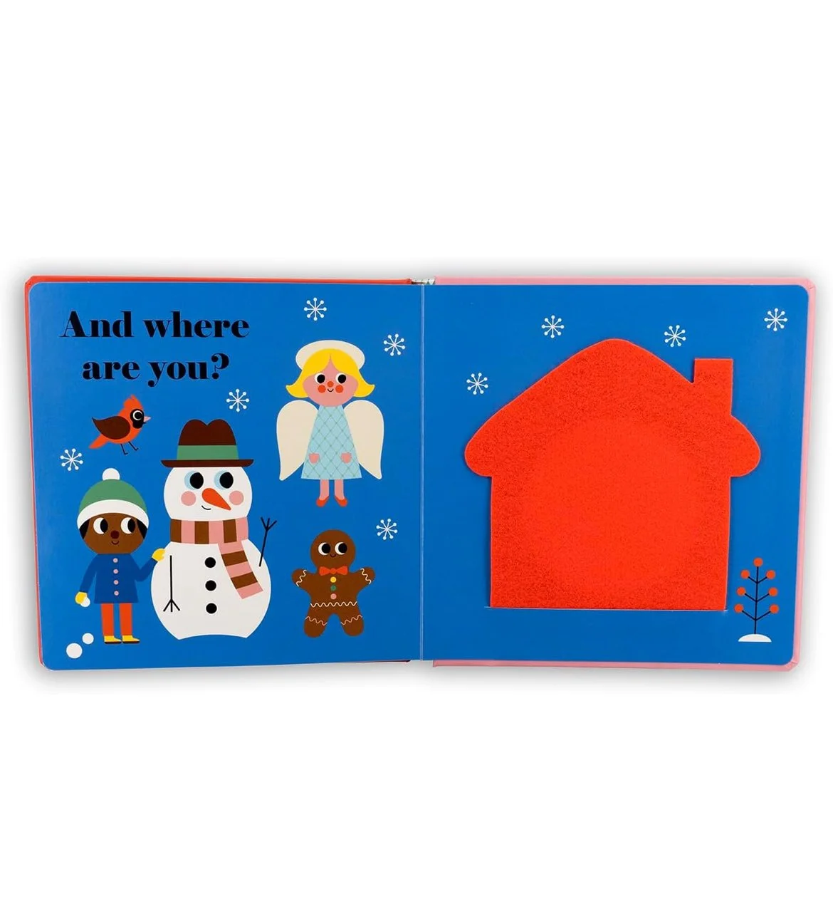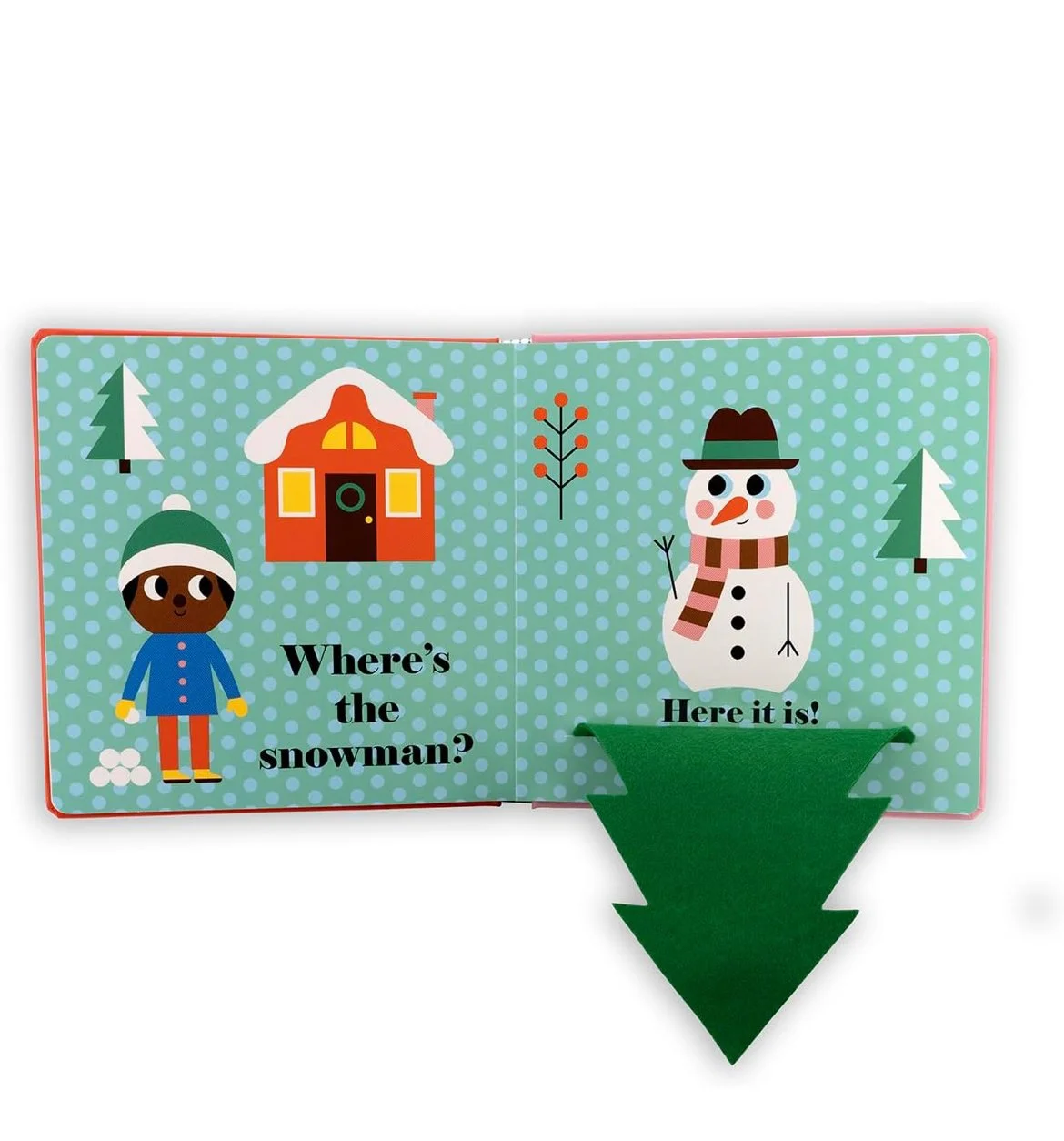 Five beautifully illustrated spreads show a series of friendly Christmassy creatures hiding behind bright felt flaps. With gold foil on the cover and a mirror on the final page, this is a perfect book to share with very little ones.