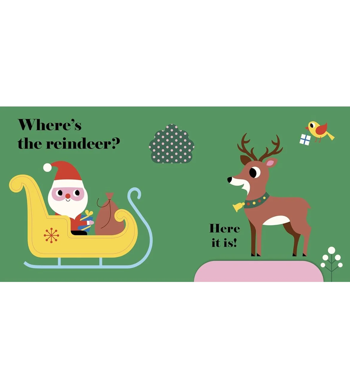 Five beautifully illustrated spreads show a series of friendly Christmassy creatures hiding behind bright felt flaps. With gold foil on the cover and a mirror on the final page, this is a perfect book to share with very little ones.