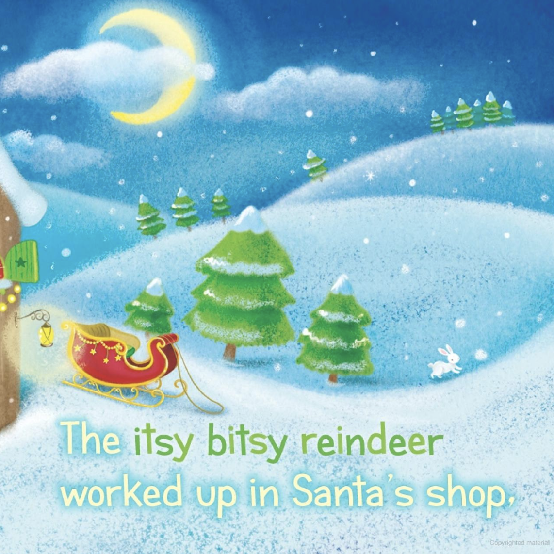 The itsy bitsy reindeer spreads holiday cheer as he helps Santa’s Workshop get ready for Christmas. Little ones will love this fresh holiday spin on the classic nursery rhyme, “The Itsy Bitsy Spider”!