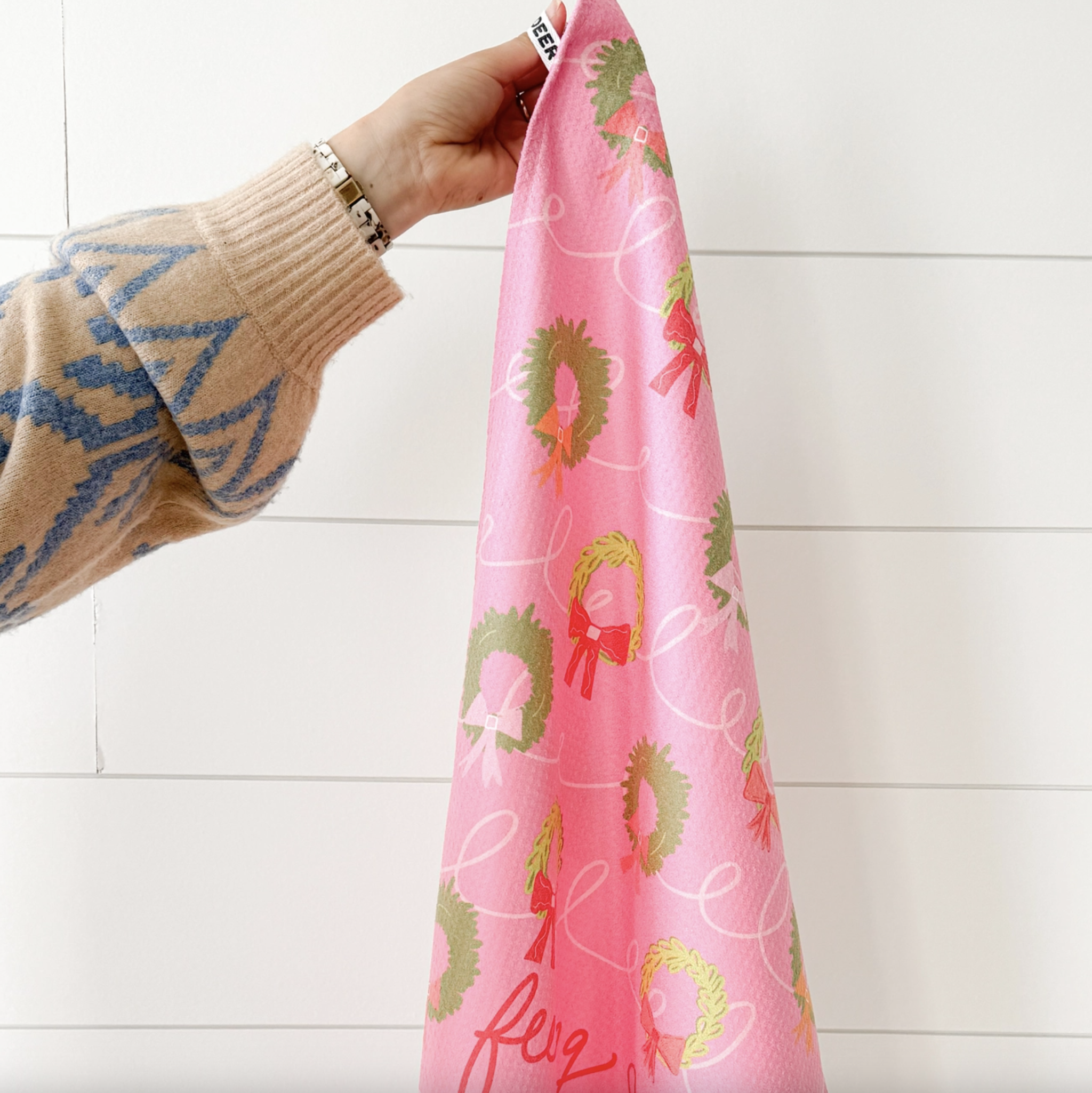 The perfect addition to your holiday kitchen! The bows & wreathes are making us SWOON. This pretty pink towel not only adds a pop of color, but it's absorbent waffle texture makes drying dishes a breeze.