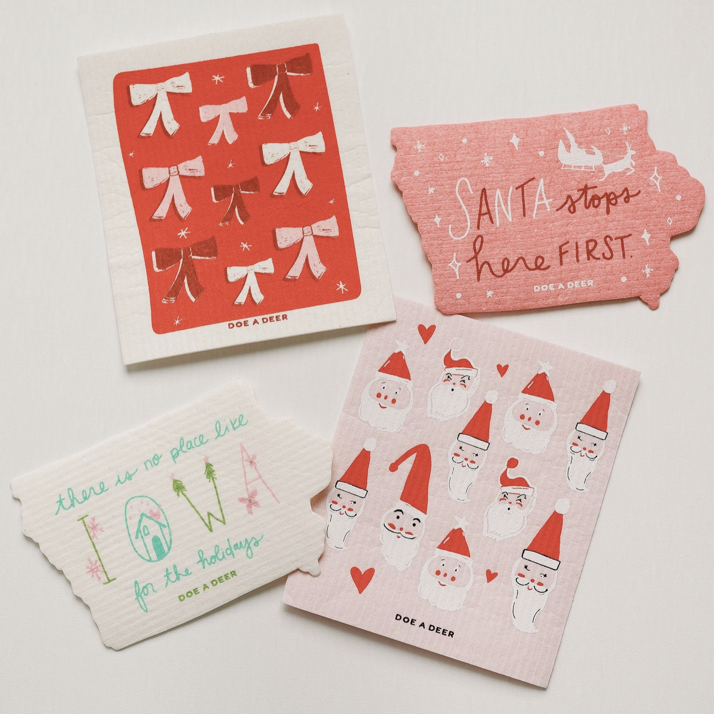 IOWA FOLKS: Invite the holidays into your kitchen with this festive Swedish dishcloth while showing some pride for your home state! Shaped like our state it features a sweet little hand drawn sleigh for some added whimsy. Gift with our Seeing is Believing Full Pattern Towel for a cute surprise for your neighbor or your secret Santa!!