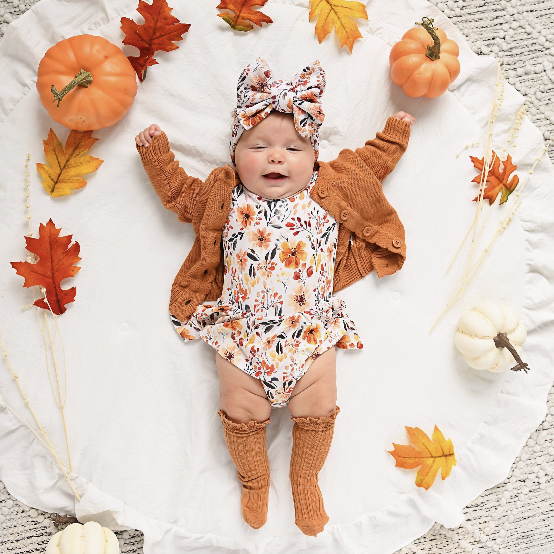 Renee Wide Leg Romper $40.00 Hazelnut Cardigan $32.00 Phoebe Wide Leg Romper $40.00 Pumpkin Garden Bamboo Dress $34.00 Pumpkin Spiced Latte Zipper Romper $39.00 Pumpkin Spiced Latte Two Piece Set $39.00 Football Turkey Nap Repeat Tee $24.00 Gobble Till You Wobble Tee $24.00 The Pumpkin Patch Crew Tee $22.00 Thankful Mama Crewneck Sweatshirt from $40.00 Sweet As Pumpkin Pie Onesie $22.00 T is for Thankful Alphabet Primer Board Book $9.99 Sold Out Here Comes Fall! Board Book $7.99 You're My Little Cutie Pie Board Book $10.00 Sold Out You're My Little Pumpkin Pie Board Book $10.00 Party Bow - Ribbed Cutie Pumpkins $8.00 Party Bow - Ribbed Fall Stripes $8.00 Turkey Time Bamboo Zippy Pajama $36.00 Karver Pumpkins 3-Layer Stretchy Quilt $65.00 Karver Pumpkins Bandana Bib Set (4-Pack) $22.00 Pumpkin Spice & Everything Nice Long Sleeve Onesie $28.00 Mid Sleeve Twirl Dress - Feast $38.00 Fall is Lit Two Piece Set $38.00 Fall is Lit Convertible Footies $39.00 Organic Waffle Simple Dress - Harvest Pumpkin $36.00 Squirrel Hollow (Maple Syrup) Mini Dough-To-Go $12.00 Sold Out Construction Site: A Thankful Night Board Book $12.99 Cozy Season Adult Tee $32.00 Harvest Memory Game $10.00