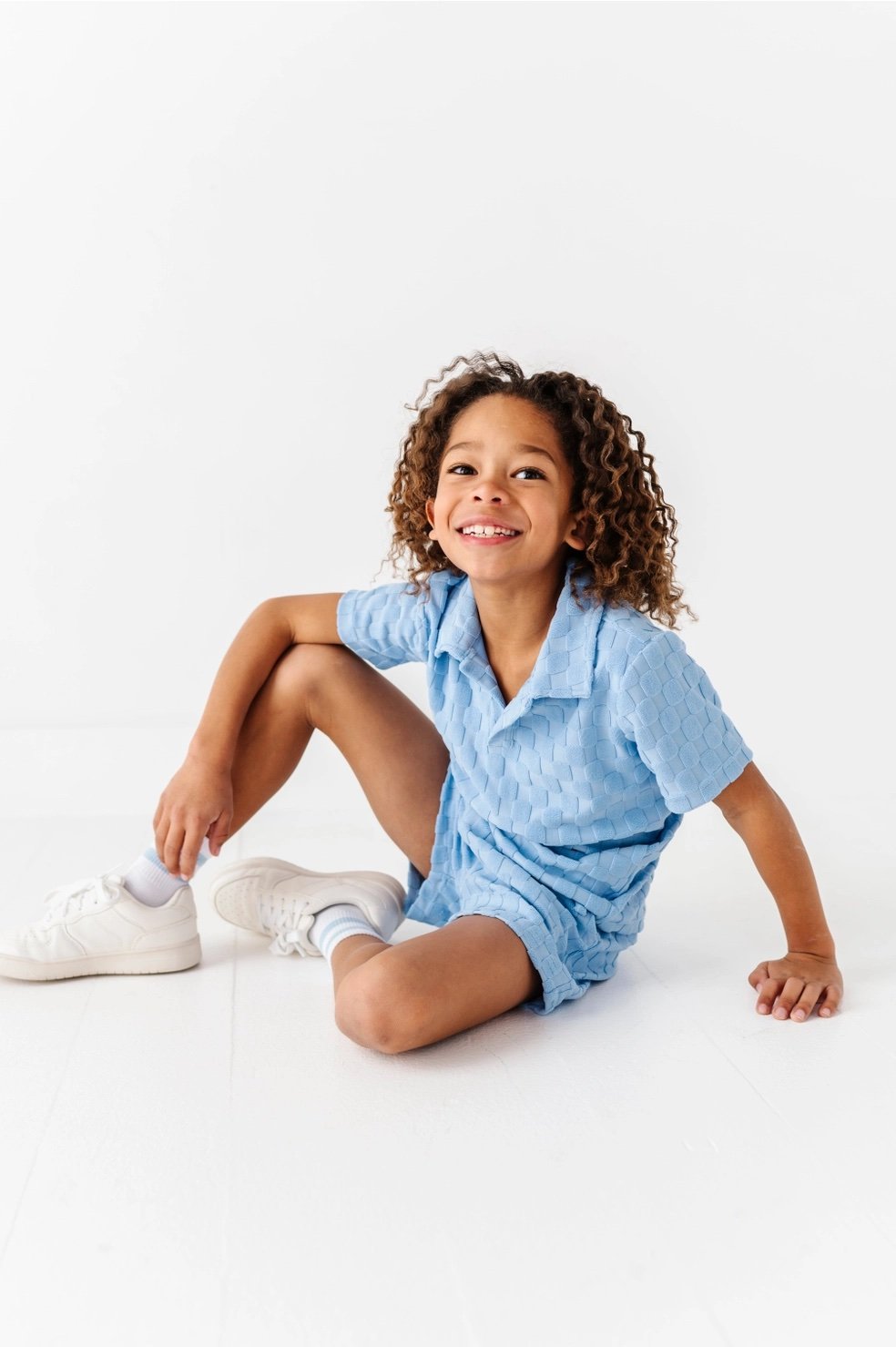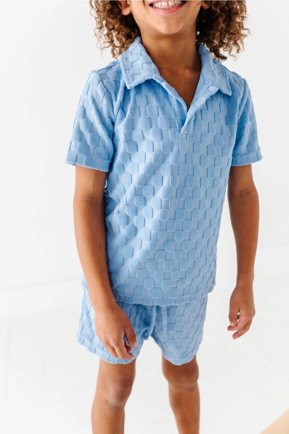 This BOYS SET runs true to size and made with a soft Terry Check fabric and lined underneath for extra coverage so nothing is see-through. The buttons down the front of the collared shirt are functional and the shorts are made with an elastic waist for maximum comfort!